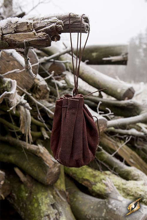 Epic Armourys Round Bag is a moderately sized bag for coins and other personal belongings. The bag closes with a drawstring set around the top, which is long enough to easily tie the bag to a belt or belt-ring.