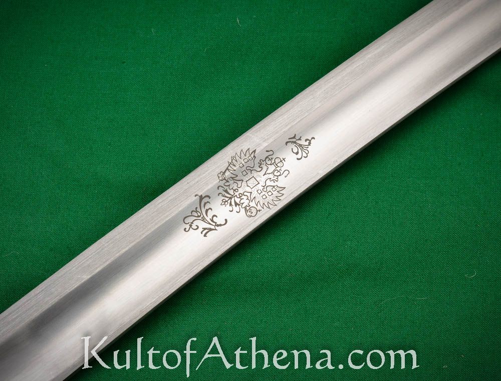 The Russian military modeled many of its sabers after the sleek and swift-striking sabers used by the Cossacks and these swords would be issued not just to Cossack cavalrymen serving in Russian forces, but to the cavalry units of Russia throughout both the Imperial period and the USSR. The 1881 Pattern of the Russian Imperial Dragoon Saber is immediately recognizable with the addition of a knucklebar and crossguard to a sword that was heavily inspired by the Cossack Shashka of the Caucasus. This battle ready reproduction has a blade of tempered and sharpened high carbon steel and it is well-balanced to ensure that it is light, responsive and capable of delivering deep cuts and swift slashes. The blade on both sides is etched and emblazoned with the regalia of the Tsarist Imperial Russian Empire with the double-headed Imperial Eagle on one side and the cipher of Tsar Nicholas II on the reverse.