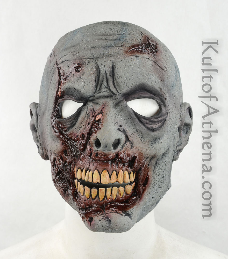 Epic Effects new Scarface Zombie is a full mask of a creature that has seen livelier days. Once a human face, it has been transformed into a decaying undead. Grisly wounds and torn off lips expose the underlying tissue, teeth and bone, giving this mask a particularly gruesome grin. This mask features many handpainted details and sculpted rotting flesh to give it a realistically macabre appearance. The eyes of the mask are large with good visibility.
