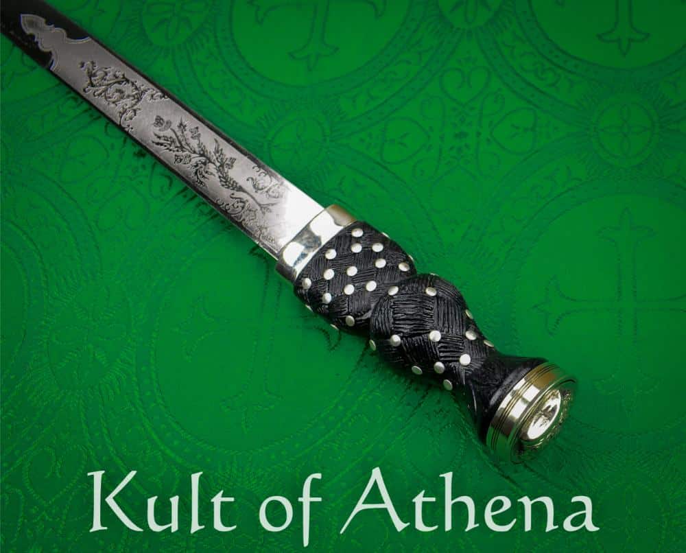 The Scottish Dirk is an integral part of the full Highlander regalia – Originally a utilitarian fighting weapon, the dirk evolved into a largely ceremonial blade, with decoration to match. Earlier Scottish dirks were simply made and durable thrusting daggers that were usually held tip-down in an ice-pick fashion to stab down into the collar and torso of a foe. In battle many were held in the left hand, concealed behind the targe shield. Held tightly alongside the shield grip, the dirk could be fatally thrust at a foe at very close range.