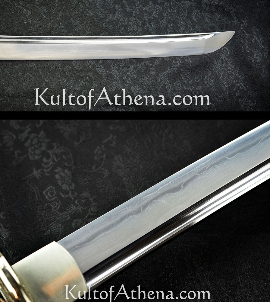 A mirror of the sea itself the blade of this katana has a wave-like hamon denoting the boundaries of hard and softer steel created when it was differentially-tempered. In addition to this the blade has ripple-like patterning throughout which was created by folding the steel when it was formed into a blade. A long and deep bo-hi groove ensures that this katana is a swift striking blade which is quick and very responsive in the hands.