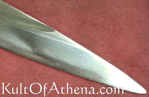 The only reason I didn’t give it 5 stars is the handle could have been augmented greatly by adding a guard and pommel. Also, I have big hands (I’m told) so I wrapped the handle in fine latigo leather lace in a nice dark brown making it look even more authentic. Definitely a 9/10 not a 4/5. Get one!!