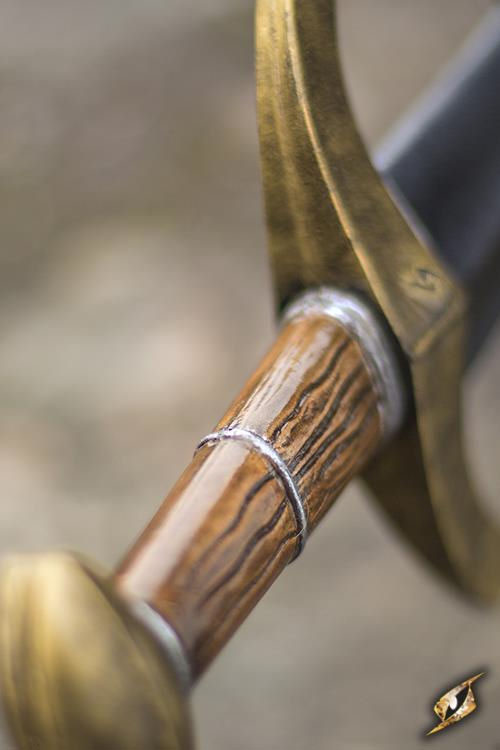 Epic Armourys Squire Sword is a short latex-hybrid sword inspired by European medieval sidearms. The sword is 85 cm long and has a 70 cm straight double-edged blade with a central ridge. The crossguard curves toward the blade to trap incoming strikes, protecting a 10 cm detailed grip–cast and painted to look like real wood with metal embellishments.