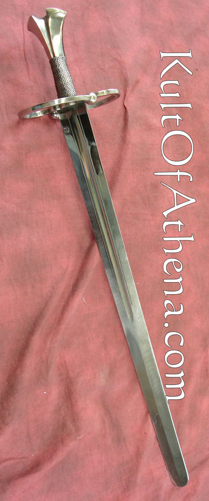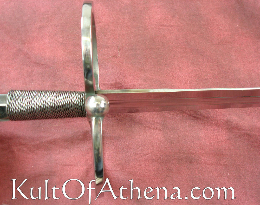 This Katzbalger is from the Czech Republic and has a thick, durable, blunted blade of high carbon steel intended for stage combat. The steel crossguard is welded on for strength, and the blade is peened to the steel pommel for a strength. The grip is tightly wrapped with steel wire.