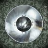 This buckler is stoutly crafted from 14 gauge steel; the reverse of the shield has a steel bar grip that is riveted into position and completed with a suede leather grip wrap.