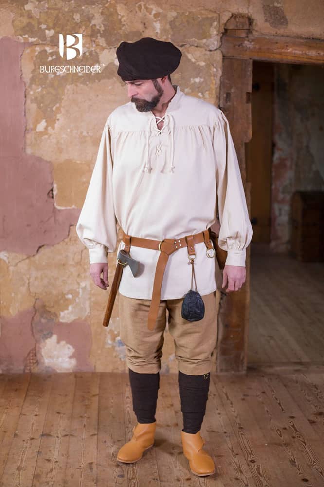 This loose-fitting Medieval shirt with a laced collor is crafted from 100% cotton fabric – from Burgschneider of Germany.