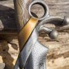 Strongholds Swashbuckler cutlass is a medium cutlass inspired by naval swords. The sword is 71 cm long and has a 52 cm curved blade that widens toward the end, designed to chop and slice when in a fight against the Parliamentarians. The detailed handle–with its curved crossguard and spherical pommel–features a handpainted finish that looks like aged iron. The 10 cm grip is cast and painted to look like wood and is ergonomically shaped, with a loop attached to the crossguard for the index finger. This grip gives you more accuracy when wielding the Swashbuckler cutlass and looks incredibly realistic.