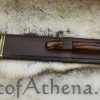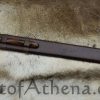 Included with the sword is a wooden scabbard which is wrapped in tight leather and fitted with an antiqued brass chape and locket. A wooden suspension loop allows for the sword to be worn with your own baldric or belt.