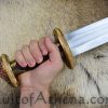 I was a bit worried that the balance of this sword would be similar to the (very rough) balance of the Deepeeka late Roman spatha I got a while ago given the similar eras, but I was honestly blown away by how light and agile this sword is. The leather grip feels fantastic in the hand and the rivets and decorative plates don’t get in the way at all.