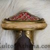The wide cutting blade of this replica is forged from high carbon steel and it is mounted into a composite hilt of wood and antiqued brass. The hardwood grip is bound in fitted leather. The original sword had red garnets inset into the pommel with the cloisonntechnique and this is replicated here with quality cast brass with scarlet enamel. Like the original sword, the layers of the composite guard and pommel secured with rivets.