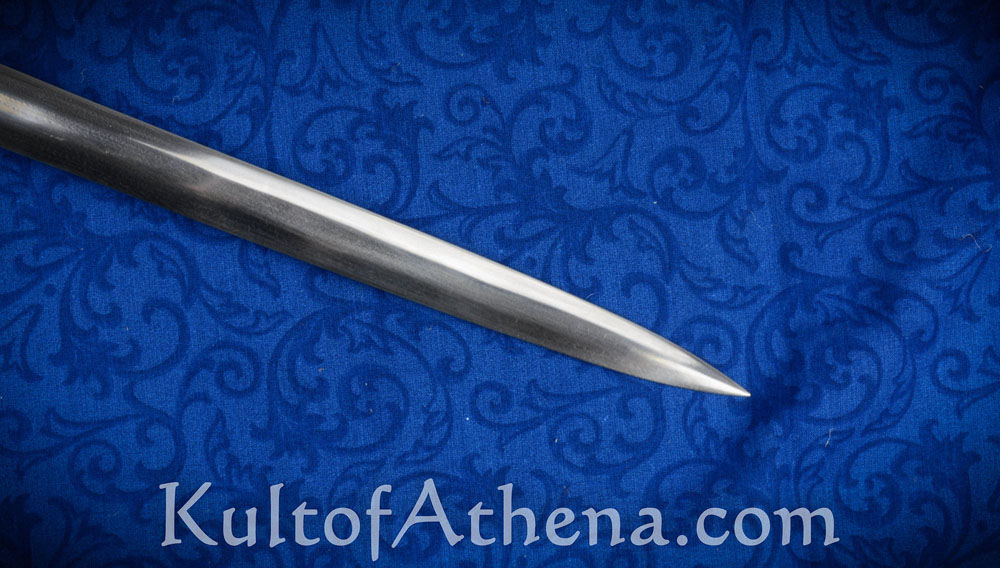 This is a large dragoon/heavy cav sword. The hex blade is substantial and has a moderate forward presence. The 3 lb weapon move well. The hilt is fairly long and comfortable. The thumb ring is large and accomodates closed to open holds depending on whether you are cutting or delivering the point.