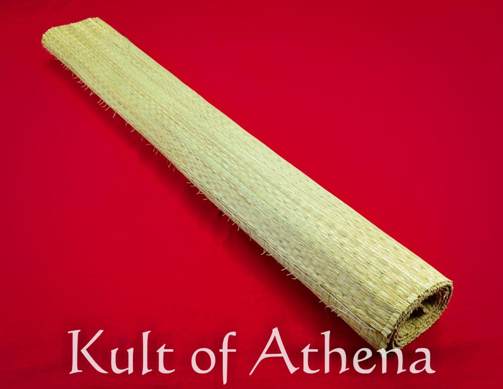 This Tatami rice mat is purpose-made for Tameshigiri cutting practice; it is an ideal material for testing the cutting ability of a sword and the skill of its user for practically any bladed weapon. This woven rice straw mat will stand 35″ tall when placed vertically and it has a diameter of approximately 2 3/4” – 3 1/4”