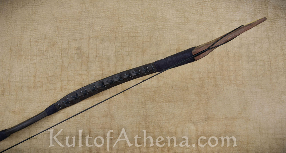 This Mongol bow is styled after the bows used by the most famous horse archers in all of history; truly, the Mongols need no introduction. Their bows were a composite of horn, wood, sinew in a glued laminate and with bow in hand and horse in rein, they brought vast swathes of the world under their reign.