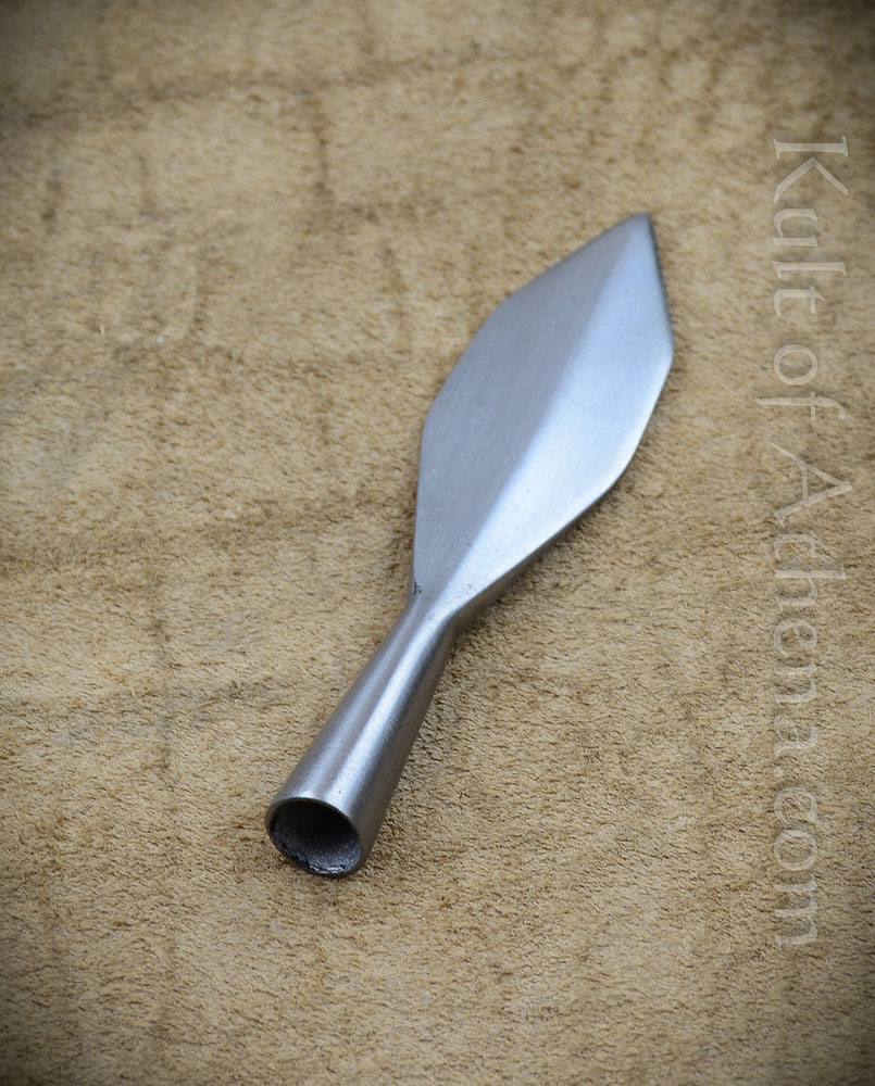 This socketed teardrop arrowhead is crafted from high carbon steel and is unsharpened.