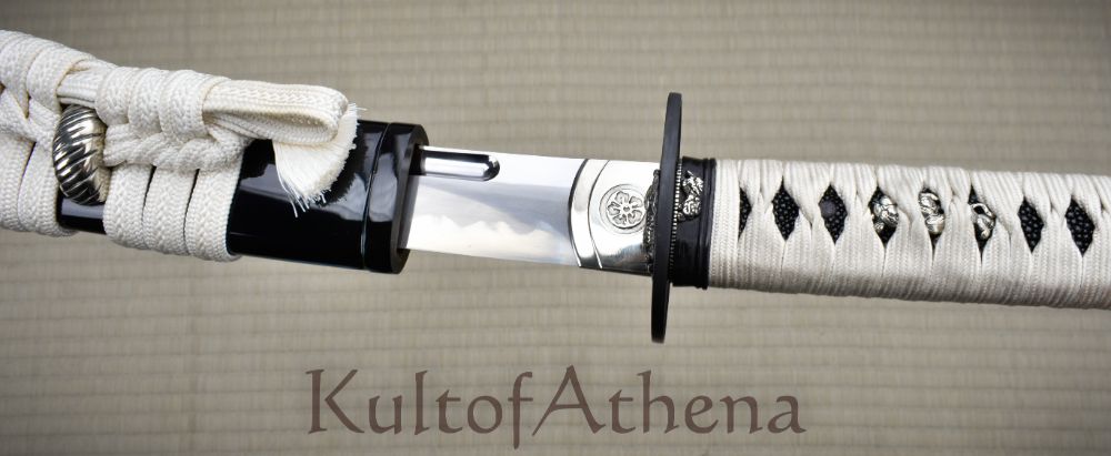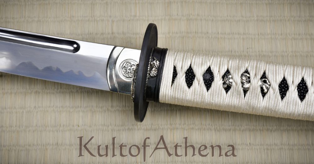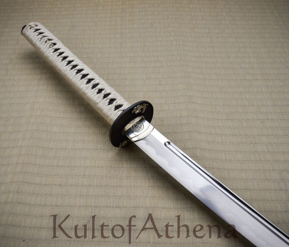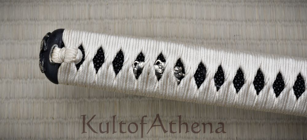 Thaitsuki Nihonto specializes in melding blades of excellent quality with distinguished and elevated koshirae hilt fittings and a premium saya scabbard. Where other brands will cut corners on the finer points of fit and finish of koshirae and blade polish, Thaitsuki Nihonto follows through to create an exquisitely well crafted sword which has had the attention of a skilled craftsman hand-finishing each step to ensure an excellent fit and finish throughout. From Thaitsuki you can expect to see blades of well-tempered steel, a superb blade polish, components of higher quality metals, a well-knotted Japanese silk grip wrap, finely lacquered scabbard, high quality samegawa rayskin, and close attention paid to details such as a tight and flush fit between the scabbard opening and its encased koiguchi.