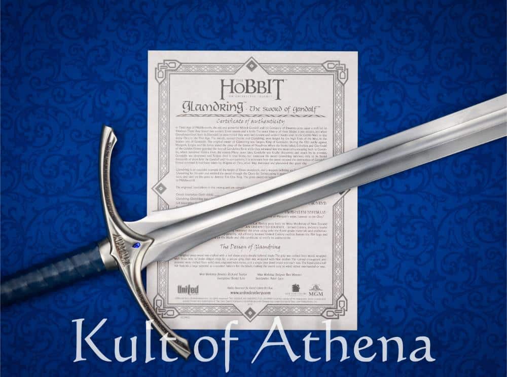 Turgon, King of Gondolin, wields, has and holds the sword Glamdring, foe of Morgoths realm, hammer to the Orcs. Thus reads the inscription upon the hilt of Glamdring, the ancient elf sword, lost for an age, but rediscovered in a troll-hoard by Gandalf and the Company of Dwarves. A superbly crafted sword, Gandalf henceforth wielded it against the foes of Middle Earth, many of whom would panic at the mere sight of this fabled blade.