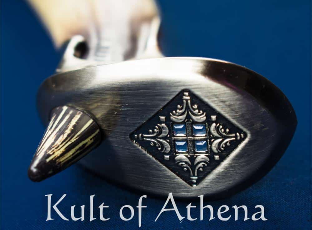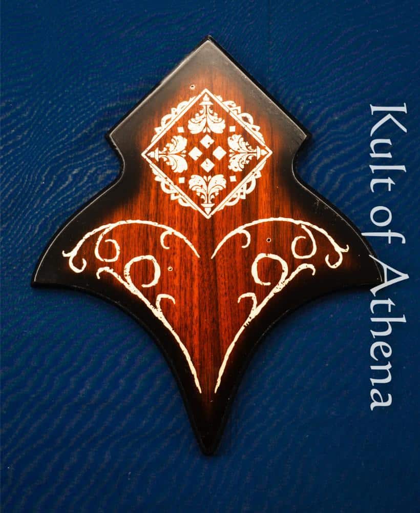This United Cutlery replica of Thorin’s sword is made with a stainless steel blade. The grip is made from a acrylic resin and faux gemstones adorn the pommel. The guard and pommel are made of steel. The sword comes with a wooden plaque, adorned wiith gold accents bearing the seal of the House of the Fountain. It comes with mounting hardware and a certificate of authenticity.