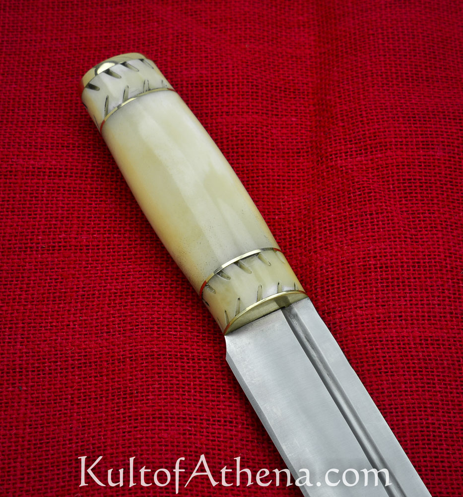 Amazing blade for an amazing price I had wanted to buy this for a while now and I finally decided to go ahead and purchase it. First of all it arrived 3 or 4 days after ordering. Fantastic shipping! The seax is beautiful. Beautiful bone grip and the blade is fantastic. I have no problems with the sheath, the leather is heavyweight and stitched together well. All in all a fantastic buy. Thanks, Kult of Athena for another solid experience.