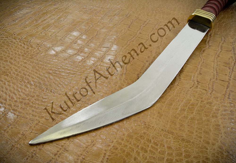 This short-bladed Thracian Sica is ideal for the Thraex Gladiator or as a sidearm for a Thracian peltast. The hooked blade delivers great force on the strike, as it simulates a pick by bring the full force of the strike onto a small, single point. This recreation has a point of balance very close to the grip, which makes it easy to wield and swing even for substantial periods of time.