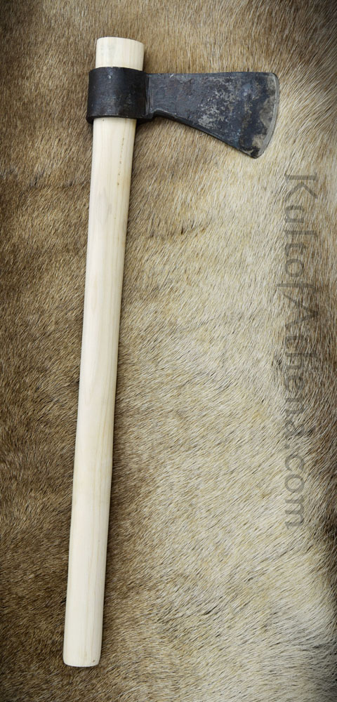This Throwing Tomahawk is forged from high carbon steel and left in a rustic state of polish to maintain its handcrafted appeal. The haft is Hickory wood with a tear-shaped cross section; ideal for both strength and aligning the edge to its target intuitively in the hand.