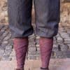 These Rus Viking pants are crafted from durable tight-weave Herringbone pattern cloth. This fabric has been found in Viking settlements such as Hedeby, Birka and York. These pants pair well with leg wraps as demonstrated in the photos (leg wraps are not included).