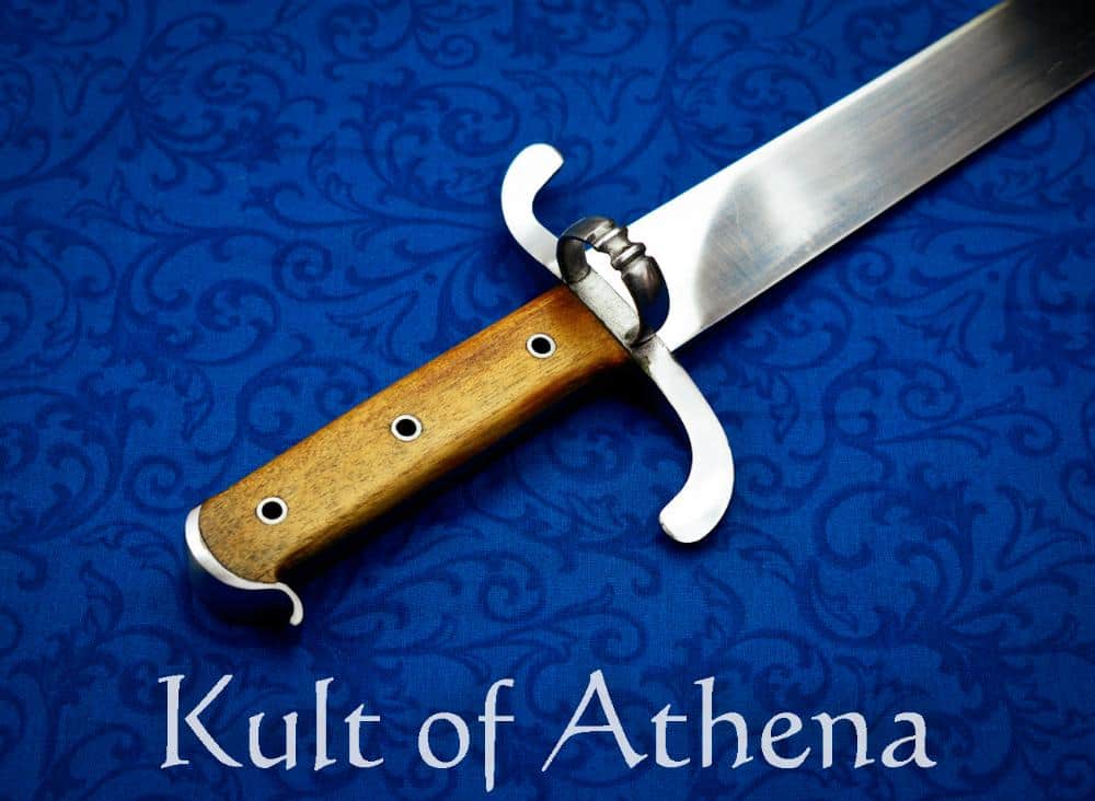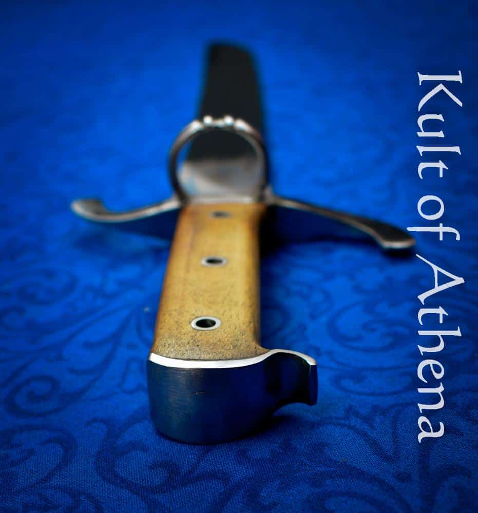 The Brueghel Messer embodies that same spirit of honest craftsmanship. Its over 14 inch blade is forged from tempered EN45 high carbon steel, producing a resilient and capable edge with a thick spine for strength and cutting efficiency. The steel guard and pommel cap frame a grip of carved hardwood scales that are riveted directly to the full tang for lasting security. The construction is completed with a traditional peen over the pommel cap, ensuring durability and historical authenticity.