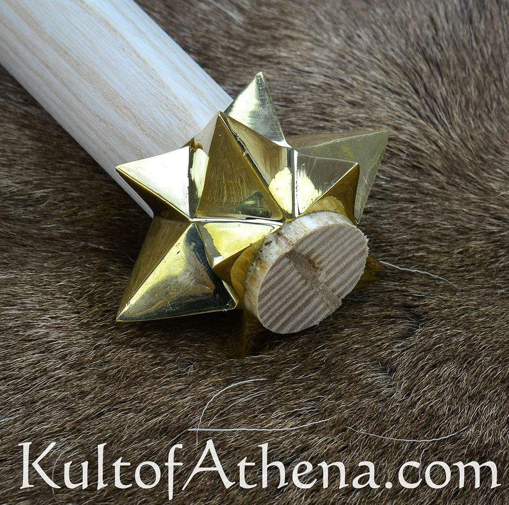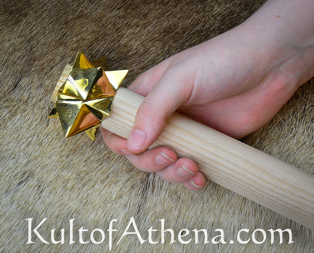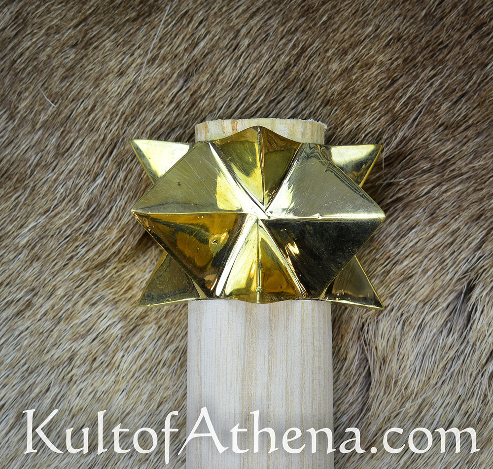 A surprisingly swift-striking design, this mace hits with velocity and its multi-pronged head of pyramidal spikes ensure concentrated force is driven into a target regardless from which direction the blow falls. Maces such as these were used by the Byzantine Empire in the 13th – 15th centuries and the design was known as far afield as Scandinavia as well.