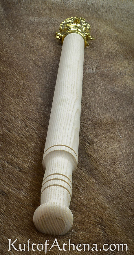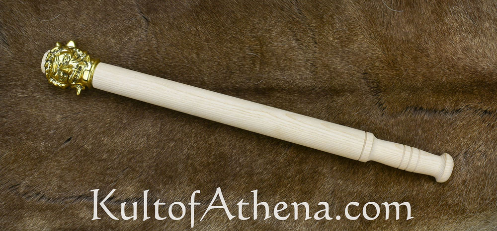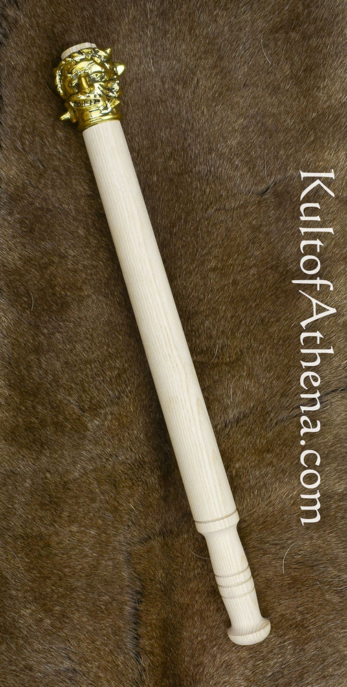 This leering and ghoulish mace with its highly detailed head is quality cast from brass and mounted atop a haft of robust ash wood. It was secured with a wooden socket wedge for a tight fit and further reinforced with glue.