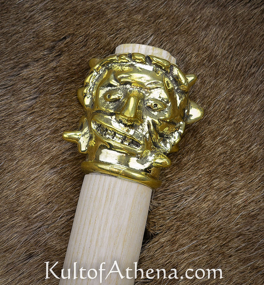 This mace is a reproduction based on a historical Scandinavian example kept within the Bergen museum collection which is dated to the 13th – 14th century. A rather characterful mace with a macabre face, it would be an unwelcome last sight for any foes it may have met in battle.