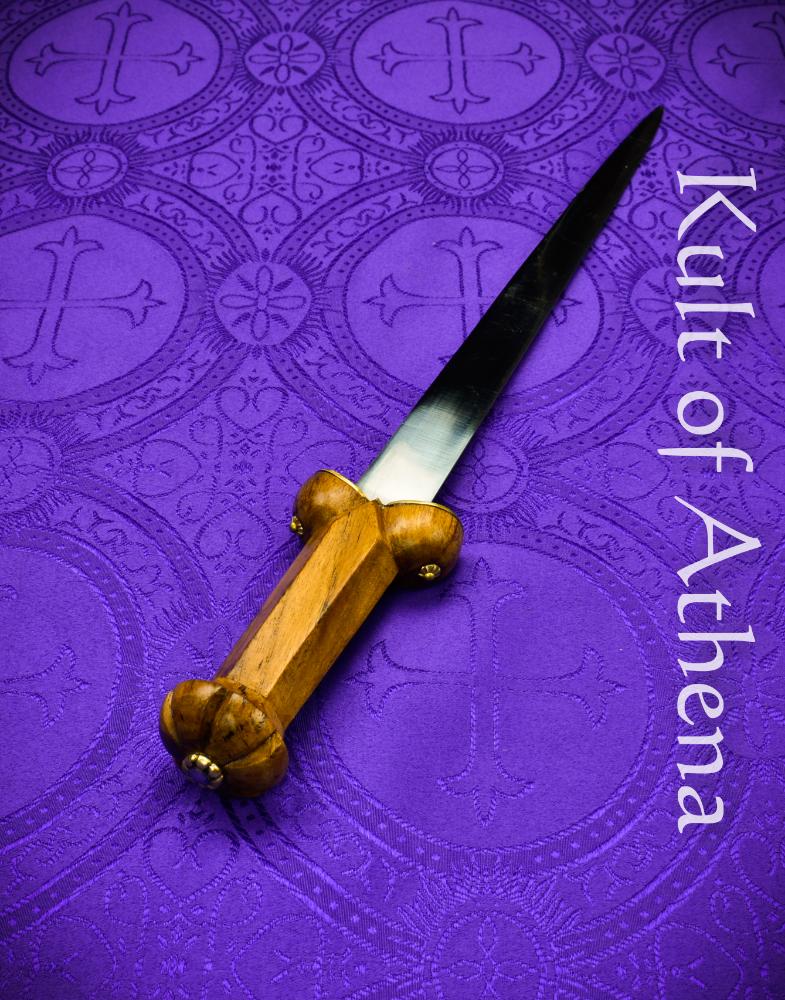 This classically styled Bollock Dagger is based on historical examples found with the wreck of the 16th century Tudor warship Mary Rose. These bollock daggers were utilitarian in form but quality-crafted to be a reliable sidearm for the English soldiers who paid for them. This example has a large blade with a thick and stout blade spine to give it great durability and rigidity. The wedge-shaped cross section slopes to a single edge to give it capable cutting ability in addition to its excellent ability at puncturing through thick cloth and the weaker points of an armored defense. The handle is hexagonal in form for a sure grip and the carved bollocks of the grip serve as brace for the thumb for better control and stability.