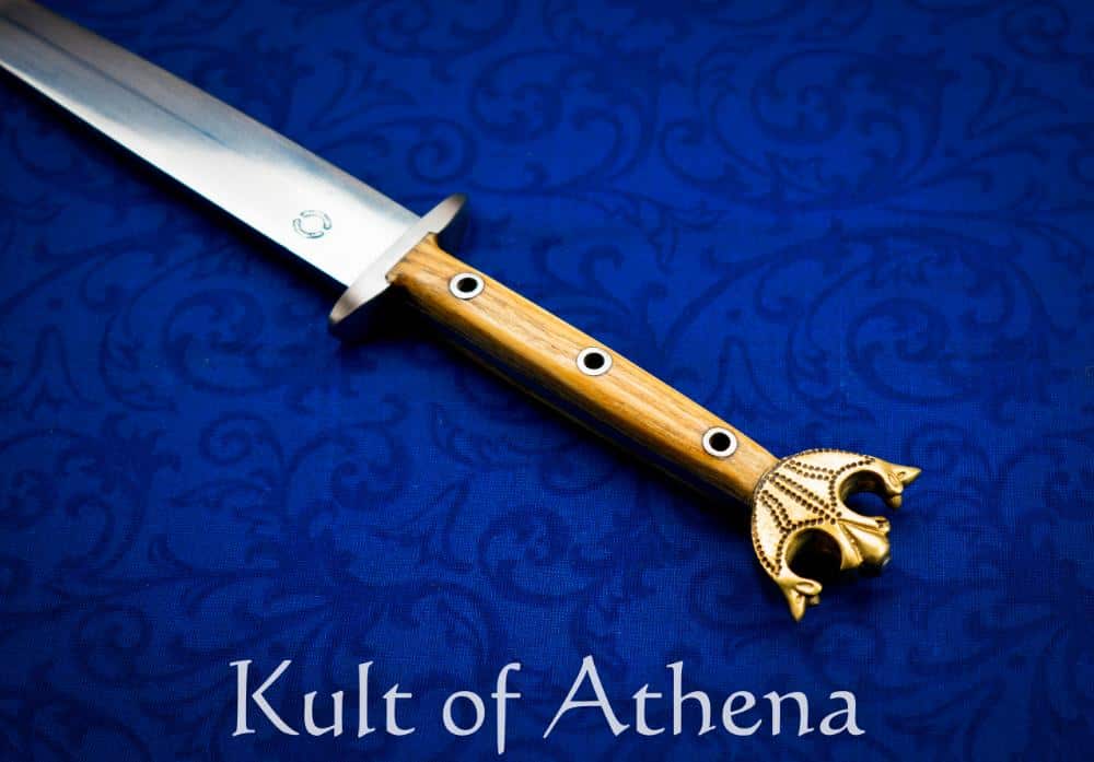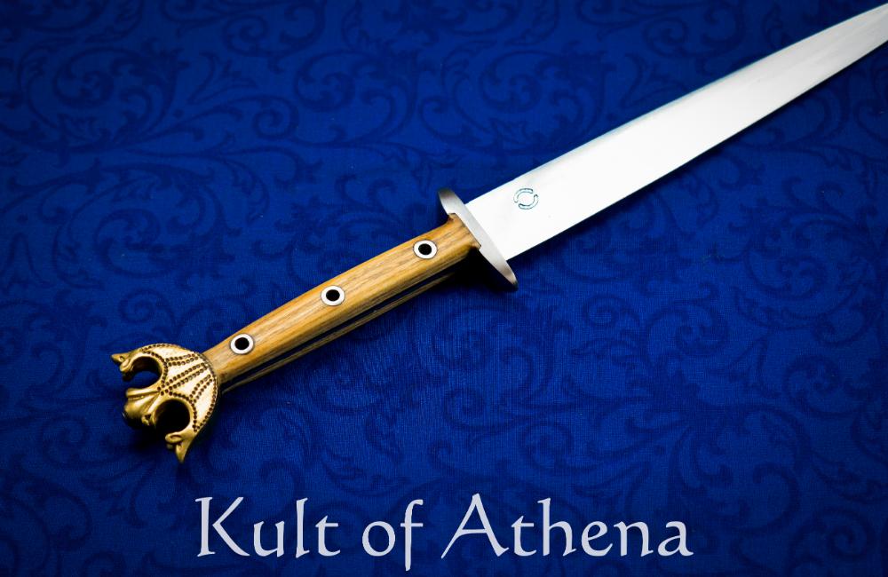 This 14th–15th century quillon dagger is closely inspired by an original example preserved in the Musée de l’Armée in Paris and represents a particularly intriguing form of medieval sidearm. The historical piece is generally attributed to the late 14th or early 15th century and is believed to be of French or German origin. With its bold profile and historic inspiration, this dagger reflects the kind of sidearm that might have been carried by knights, men-at-arms, or chevaliers across late medieval Europe. While daggers of broadly similar style are known from the period, the original stands out for its distinctive brass pommel decorated with striking zoomorphic beast-head forms. This unusual feature makes the design particularly unique, as no other surviving daggers share this design with the stylized beast head forms.