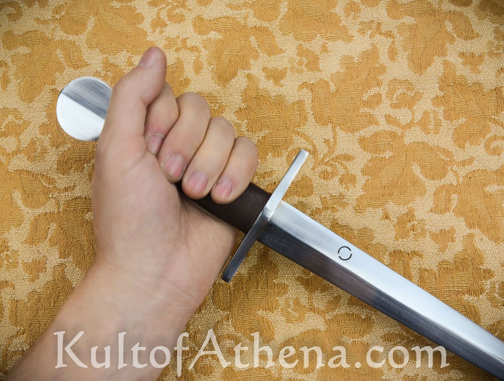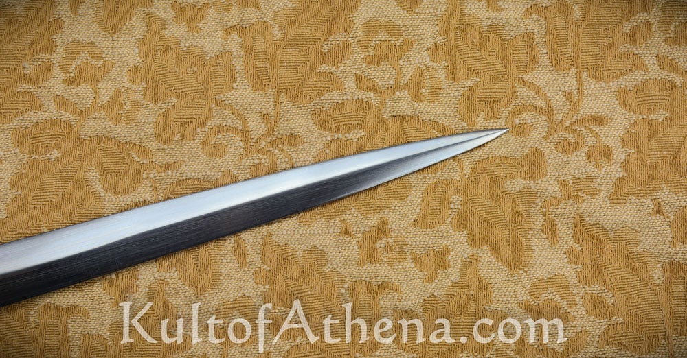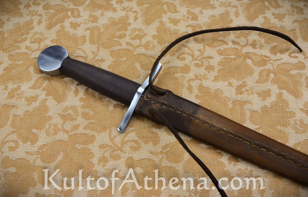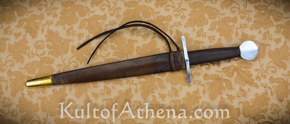 This was my first TC dagger. It feels so good in the hands, similar to a Sykes Fairbairn Commando dagger. Most of the weight is towards the grip which makes the tip speed quick. It came sharp and the edge on it was quite decent. There is a slight secondary bevel to it but nothing that would not be historical. Like all the TC knives I own, it is hard to put this thing down. I pick it up all the time. The sheath looks good and works well, even though it is more of a utilitarian style. The leather tongs let the dagger sit perfectly on a belt. There were some minor imperfections with the knife such as a centering of the wheel pommel but you have to look very closely to see it. It shows that this is a handmade knife after all. Definitely recommend it.