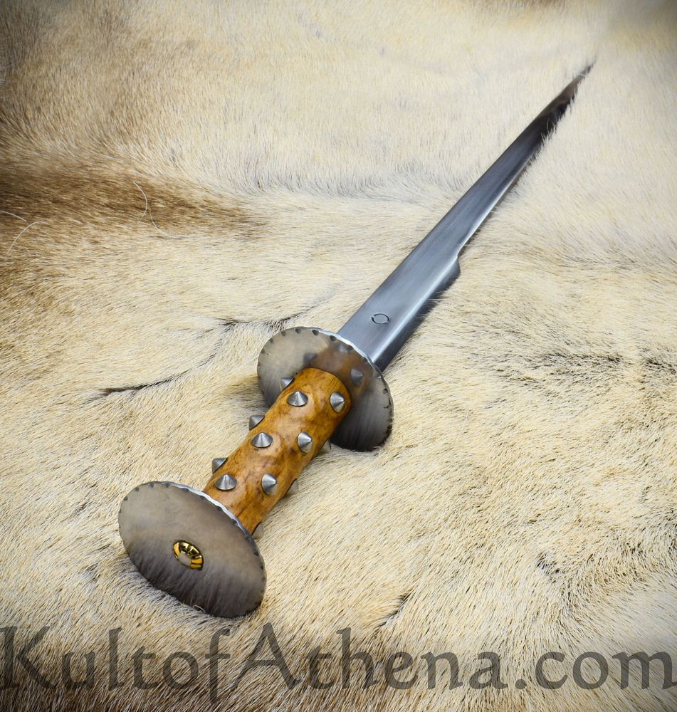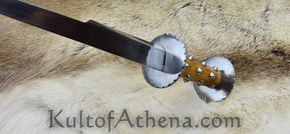 Really quite nice you can see some glue where the rondel guard receives the blade. Needs a bit of honing when you get it. However it is very comfortable in the average hand. The studs make the grip feel secure and are surprisingly comfortable. If one has a very large bear paw for a hand it might not be for you, but for average to smaller hands very comfortable. The blade is absolutely vicious and well made the rondels are simple yet handsome. I very much enjoy this piece.