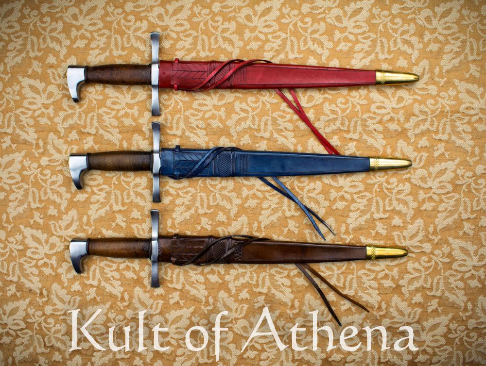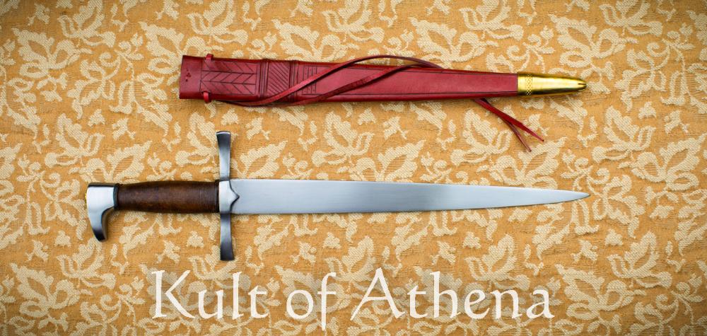 With a blade length of over 11 inches, this dagger is perfectly suited for self-defense, combat, or utility tasks, serving as a versatile sidearm for knights, men-at-arms, or soldiers during the War of the Roses or similar periods. Its robust spine ensures rigidity and durability, tapering to a double-edged blade with a sharp, piercing tip. The 4-inch hilt provides a comfortable and secure grip. The dagger comes with a high-quality, double-layer vegetable-tanned leather sheath, featuring stitched construction, incised decoration, and a brass chape. It is ready to be fastened to your belt.