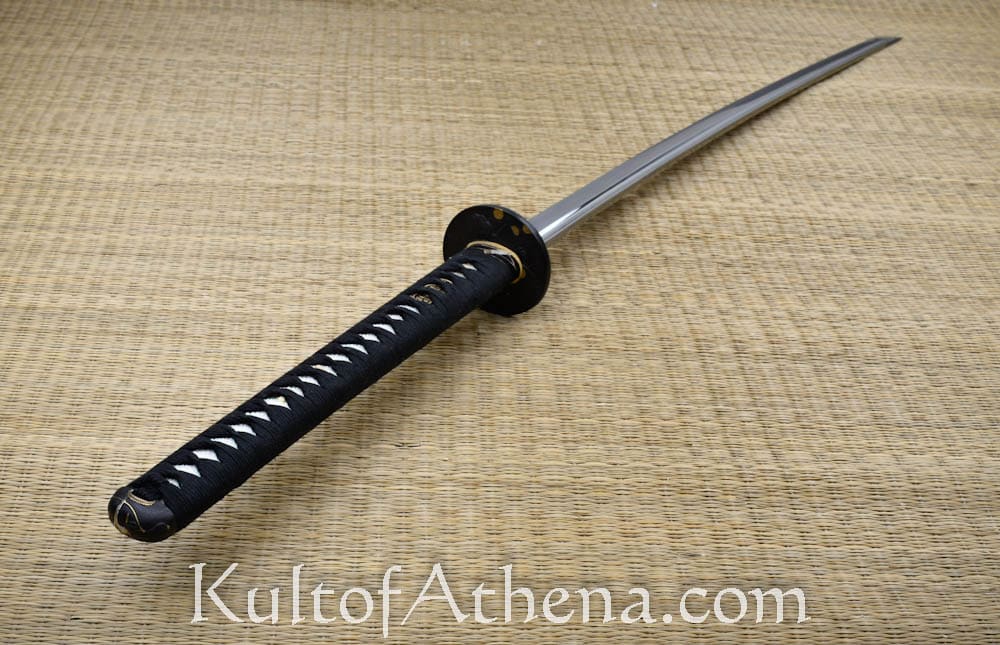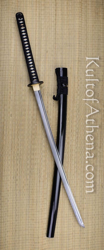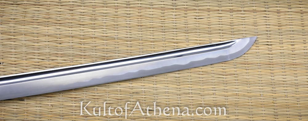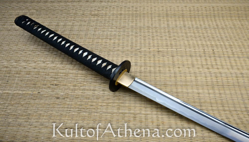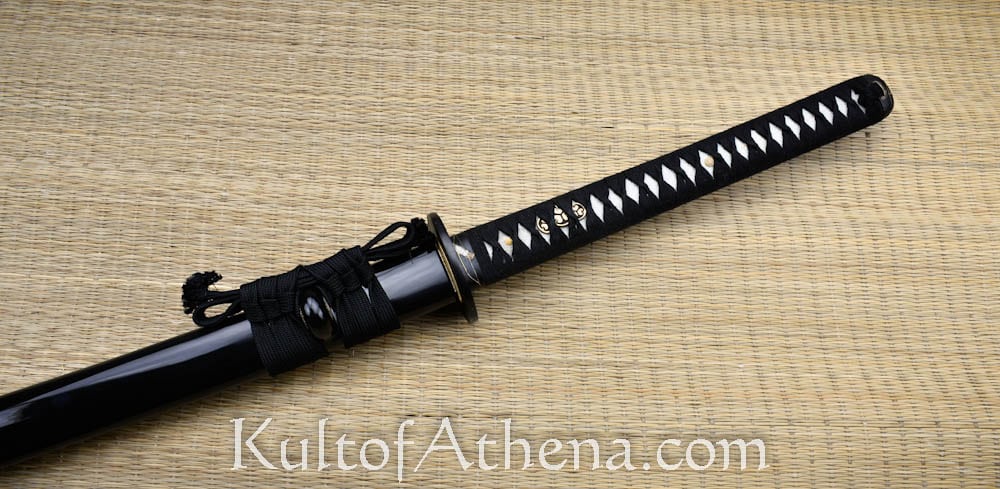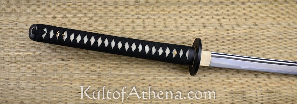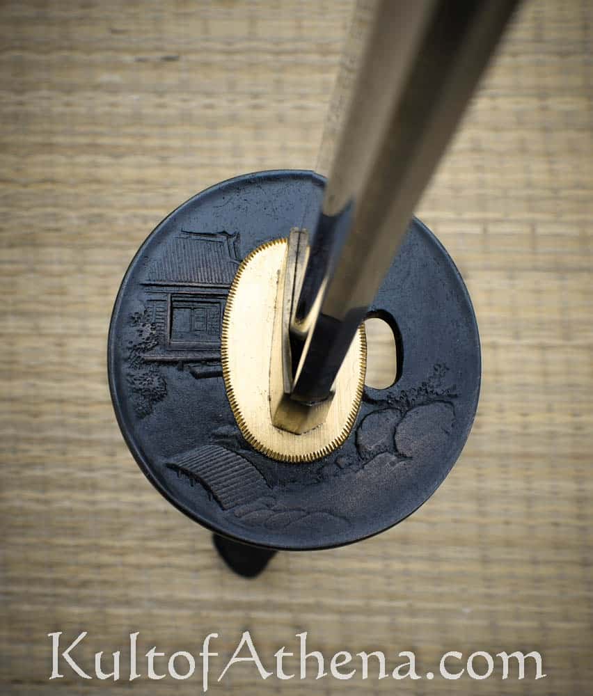 This katana from Hanwei draws its thematic inspiration from Tokugawa Ieyasu, the first Shogun of the Tokugawa Shogunate and one of the the three “Great Unifiers” of Japan alongside Oda Nobunaga and Toyotomi Hideyoshi. The blade is forged from tough T10 high carbon steel which has been clay-tempered in the traditional manner to possess a genuine hamon of hardened 60 Hrc steel and a shock absorbing spine of 40 HRc. The sword is quite responsive and quick on the strike due to its long and deep bohi groove which reduces weight with little loss of overall durability. The blade was finished with a fine quality polish which brings out and highlights the natural hamon of the blade edge.
