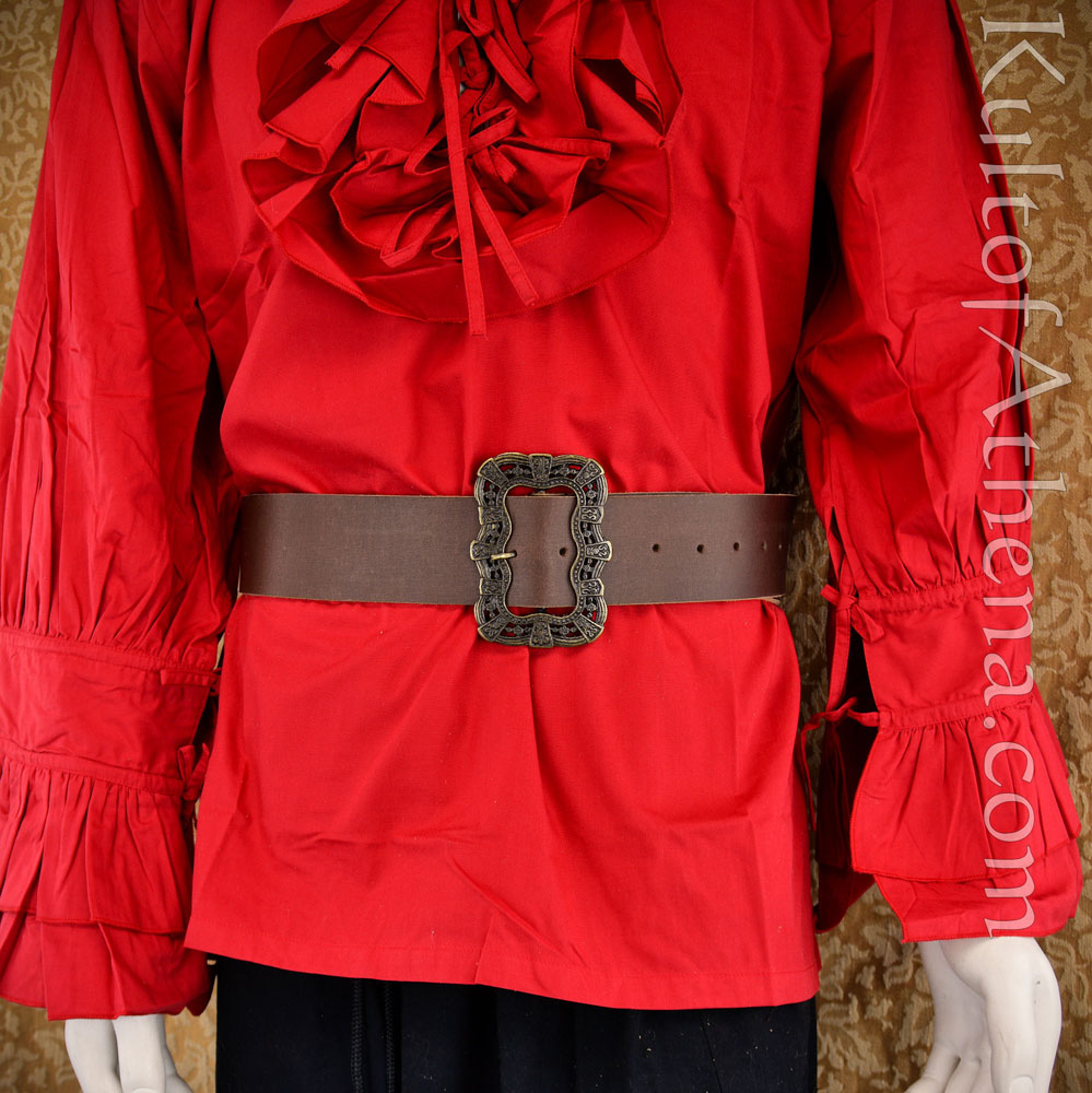 The Tortuga Pirate Belt is crafted from wide and thick, quality leather that is both strong and supple. The belt is adjustable with its large, antiqued brass belt buckle.