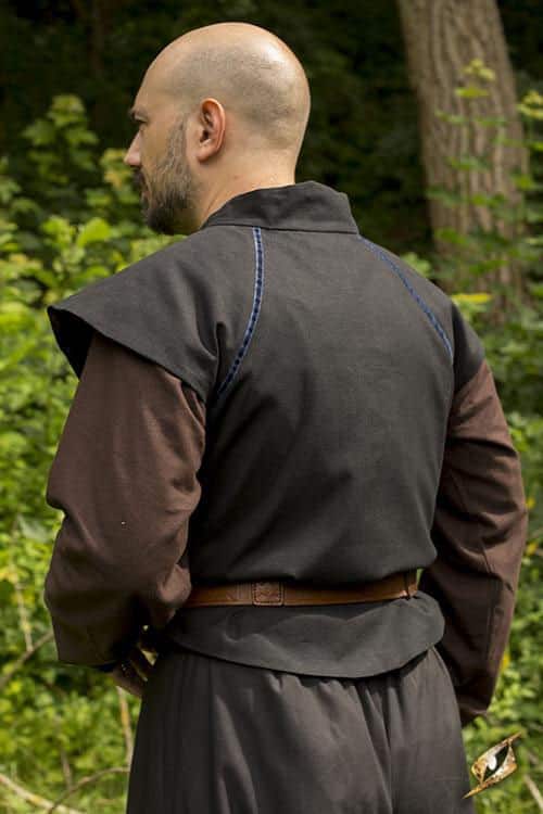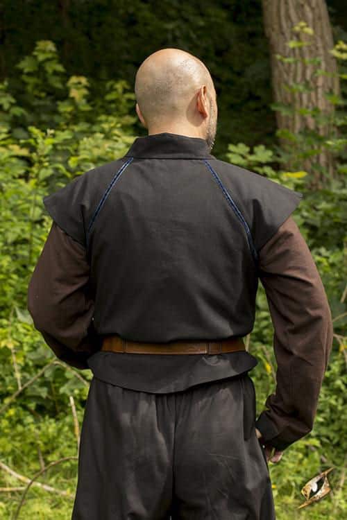 Epic Armourys Vest Tristan is a sleeveless shirt designed with bureaucrats or well-mannered townsfolk in mind. Reaching from the shoulders to the waist and made from soft, dyed cotton, this vest can be a costume all by itself–or work as a layer in a more complicated design. Designed to be form fitting and sleek, the vest features coloured trim meant to give you a slim and groomed appearance.
