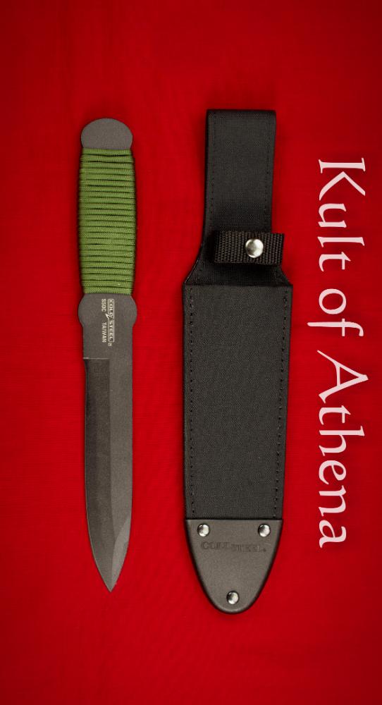There are a bewildering number of throwing knives on the market these days, and it seems that most of them are made out of cheap steel that bends or, in the worse case scenario, stainless steel that breaks. Thats why Cold Steel made the True Flight Thrower. The Cold Steel True Flight Thrower beats the competition by a wide margin. For strength, it uses 1055 carbon steel finished with a black, baked-on protective coat. This makes for a hard, yet resilient blade that will ”bounce-back” from any throw. And for versatility, the True Flight Thrower has a utility edge that will stand-up to your toughest chores. Overall length is 12”. The handle has a paracord wrap. Sheath included.