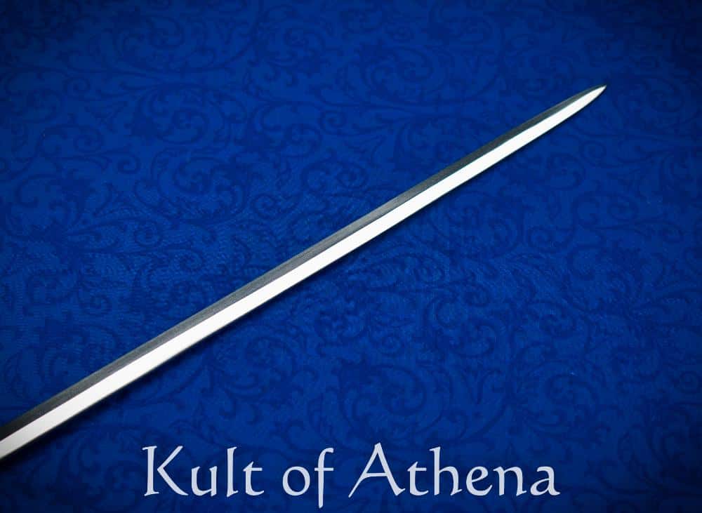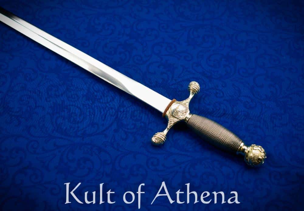 This reproduction of the US Air Force Sword has all the details of the ceremonial sword, but unlike most examples available elsewhere it is built to a battle-ready standard with a solid and strong hilt construction matched to a high carbon steel blade instead of brittle stainless seen in most presentation examples. The 31″ long blade is forged from high carbon steel and was then tempered and polished to a final finish. The hilt is finely cast and full of detail from solid white brass for a durable silvered appearance. The under 3 inch grip is bound in twisted matching wire for a beautiful and sure grip – the grip appears short in the specs but when the grippable ferrules of the guard and pommel are included them the part of the hilt that allows for a grip extends past 3 inches. Slim and elegant, the sword clocks in at less than 2 lbs and is a fine piece for display, collection or use.