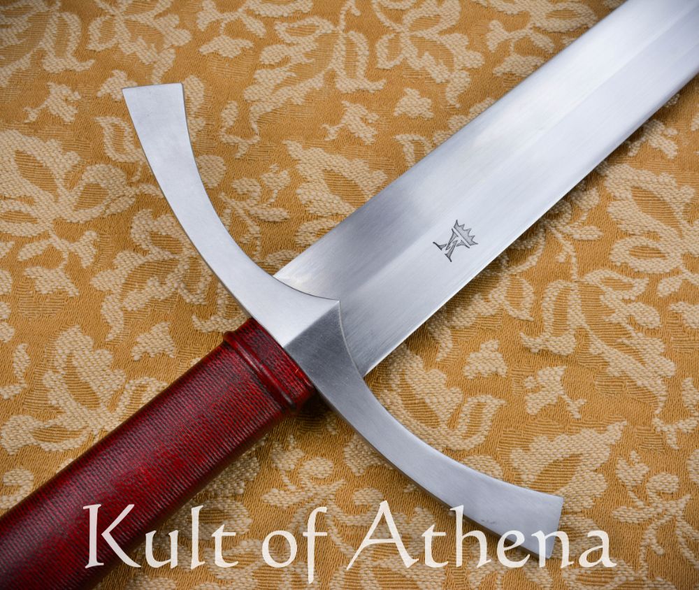 This Valiant Armoury German Longsword is part of Valiants Craftsman Series and was entirely made in the USA by Zach and Sonny Suttles. This premium quality offering from Valiant has a blade of 6150 high carbon steel which has been well-tempered. The sword is finely balanced and is quite responsive and will both cut and thrust with great ability. The crossguard and pommel are steel and the wooden grip is well-shaped and contoured and is finished with a tight and excellently executed binding of oxblood hue leather. The blade and hilt were mounted together with a hot-peen construction for a powerful and strong permanent connection.