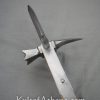 Durability aside, I was disappointed that the wood haft on the polearm I received was a much lighter, and much less rich colour than the one in the pictures, and in some places the langets–while securely attached–were attached sloppily. The final thing of note would be the rectangularly-shaped haft. Striking an object with any considerable amount of force is no joy with this polearm due to the pain caused by the 90 degree angles of the haft. This could have been avoided if this weapon had an octagonal haft.