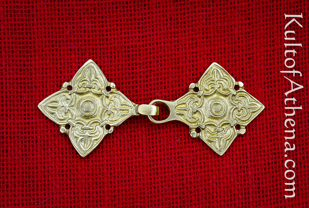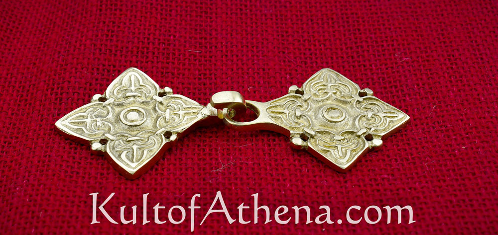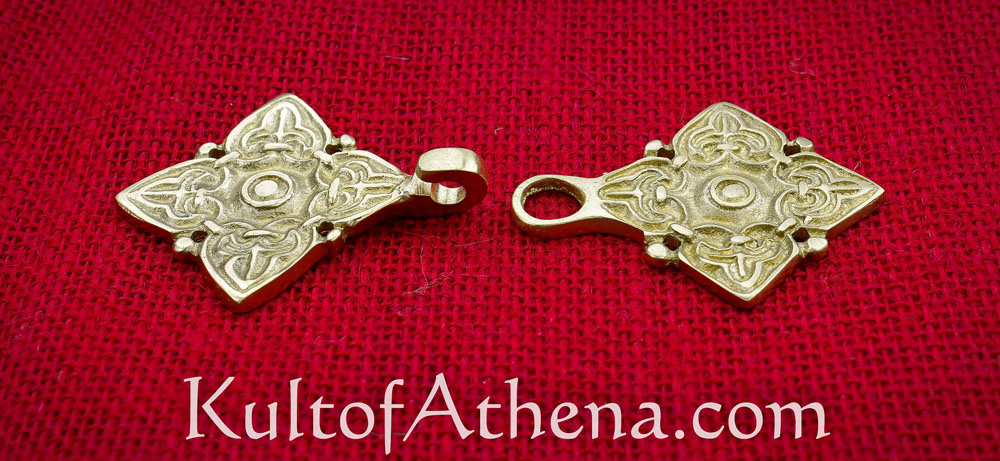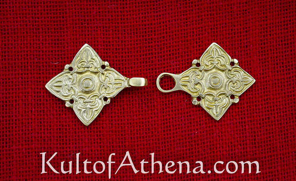 This Viking Cloak Clasp Set can be sewn onto the front of your cloak and allow for it be easily secured in style with a simple hook clasp. Its two matched pieces are highly detailed and cast from solid brass. Pre-drilled holes allow for it to be sewn onto your cloak with ease.