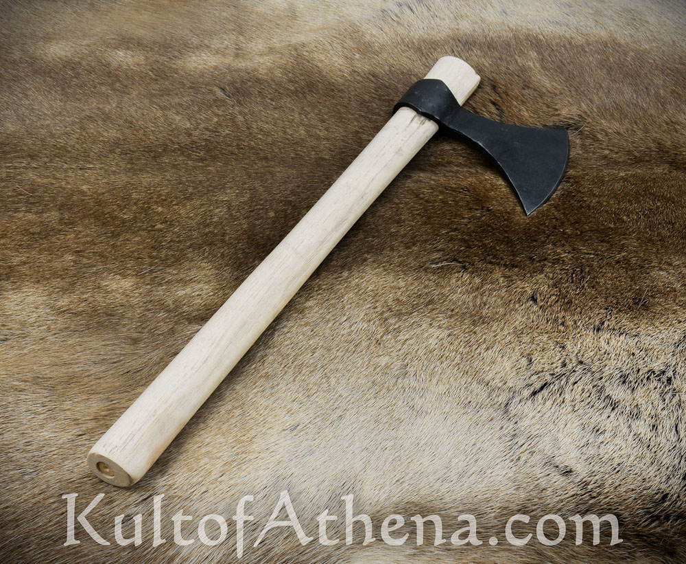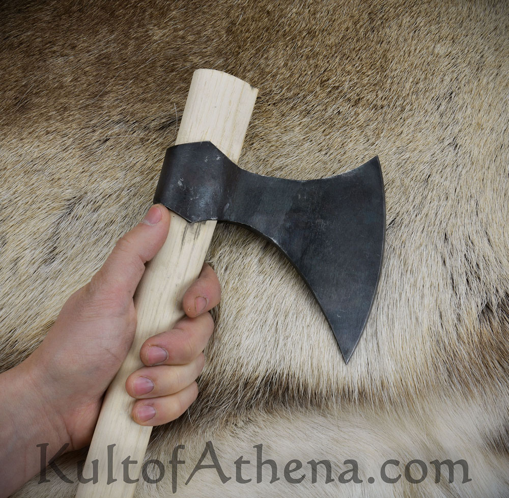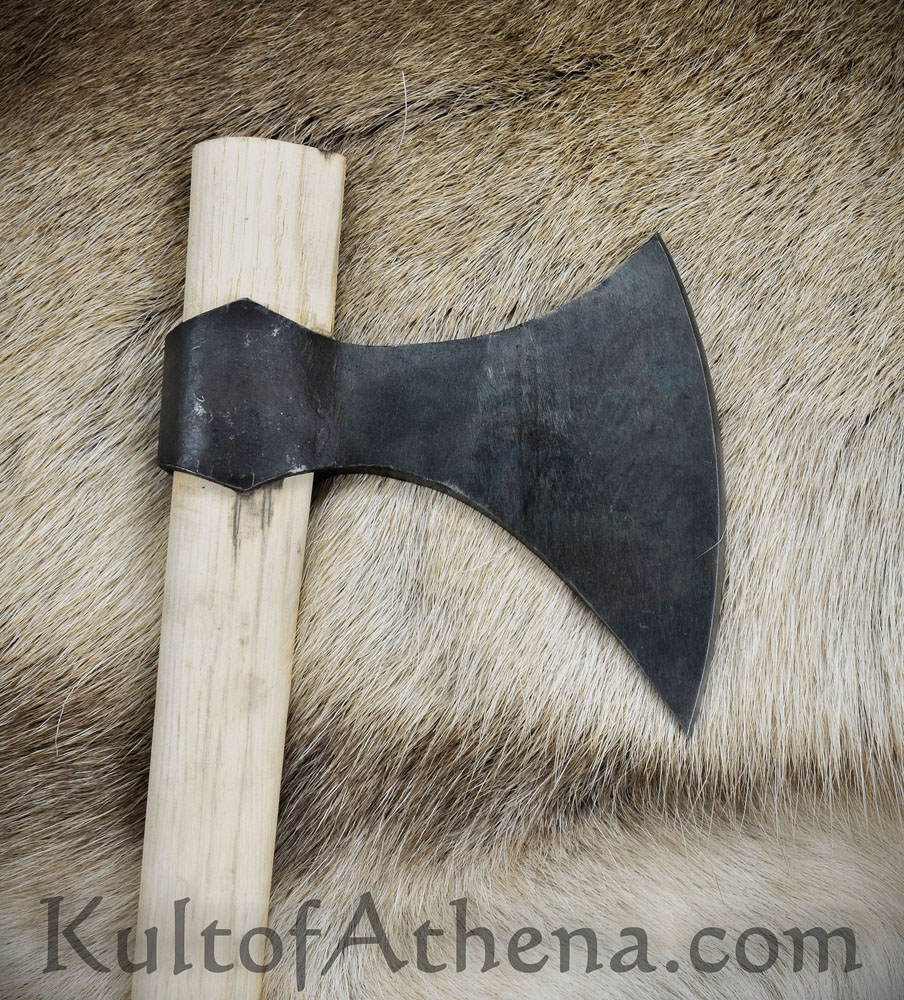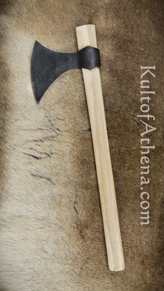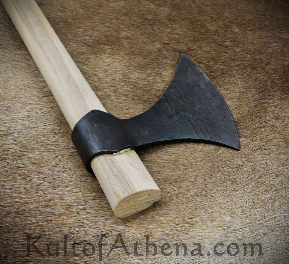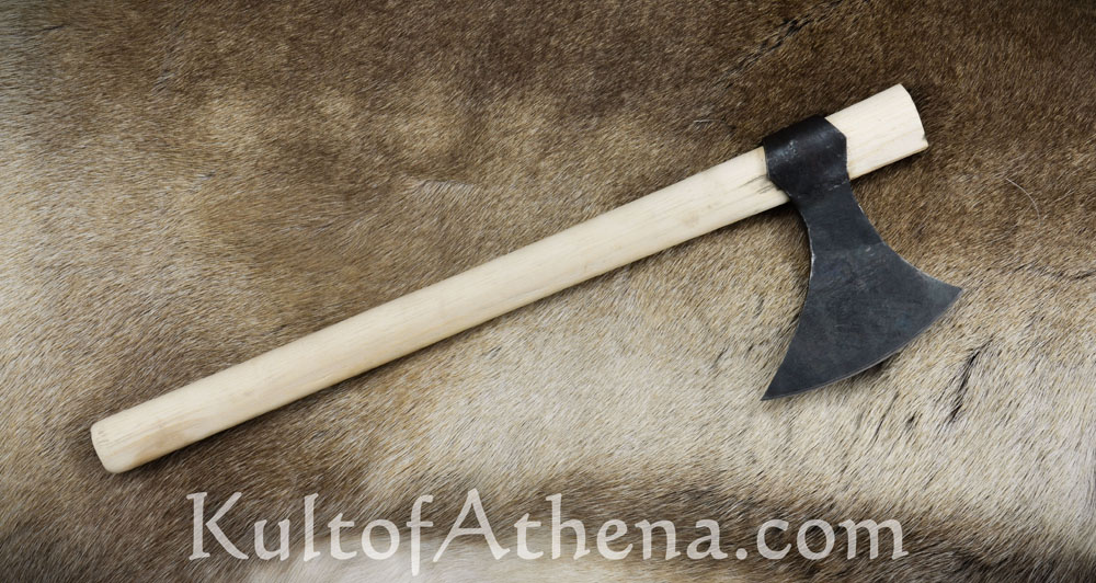 This Viking Throwing Axe has a head of high carbon steel which is mounted onto a haft of solid and stout Hickory hardwood. Replacement handles are available and are sold separately.