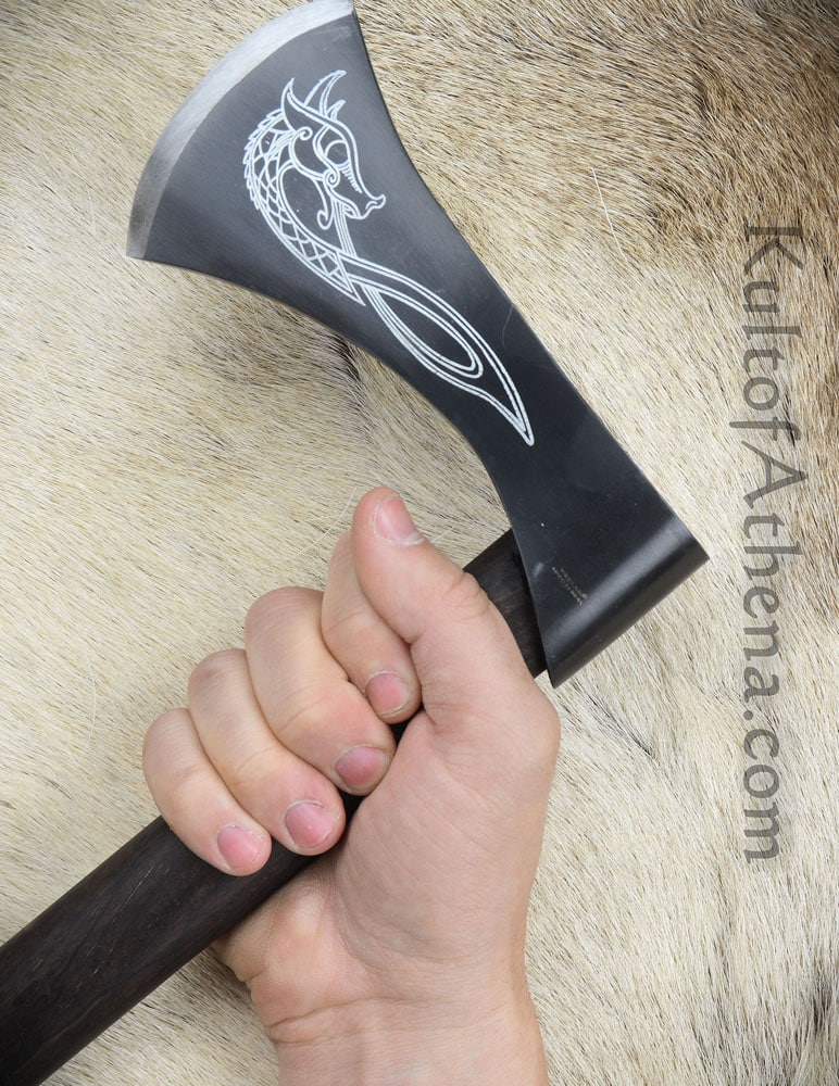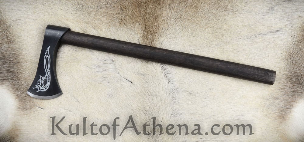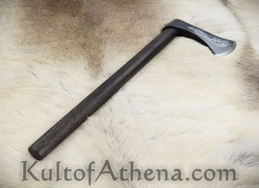 Nice Little Piece Very attractive and functional axe head, but I’m not so sure about the handle. The wood seems kind of “disposable,” for lack of a better term, and the head rattles on the shaft a bit (straight out of the box). I reckon that’s why they sell a spare though! Anyway, KOA put a really nice edge on it and I still got it within a week, so that part of the review gets high marks! Overall, I’d say I would recommend it – despite the handle. That can be replaced, and I didn’t really buy this one for throwing anyway, so no harm, no foul. It looks fantastic on my “medieval” wall, and I wouldn’t have any reservations about pulling it down and using it in self-defense if I had to, so I’ll call myself happy!