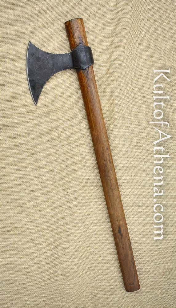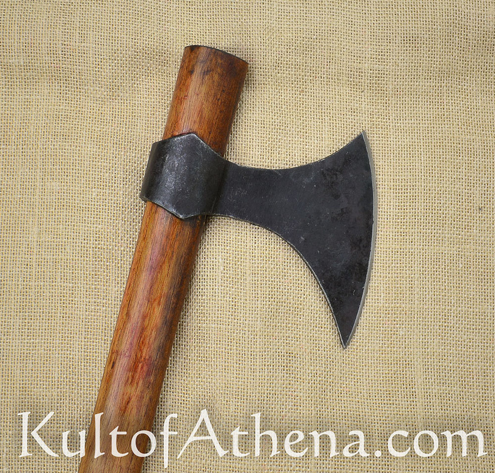 This Viking Throwing Axe has a head which has been hand-forged from high carbon steel and mounted onto a hardwood haft. Replacement handles are available separately and can be found with a thumbnail link under the also available section on this page.