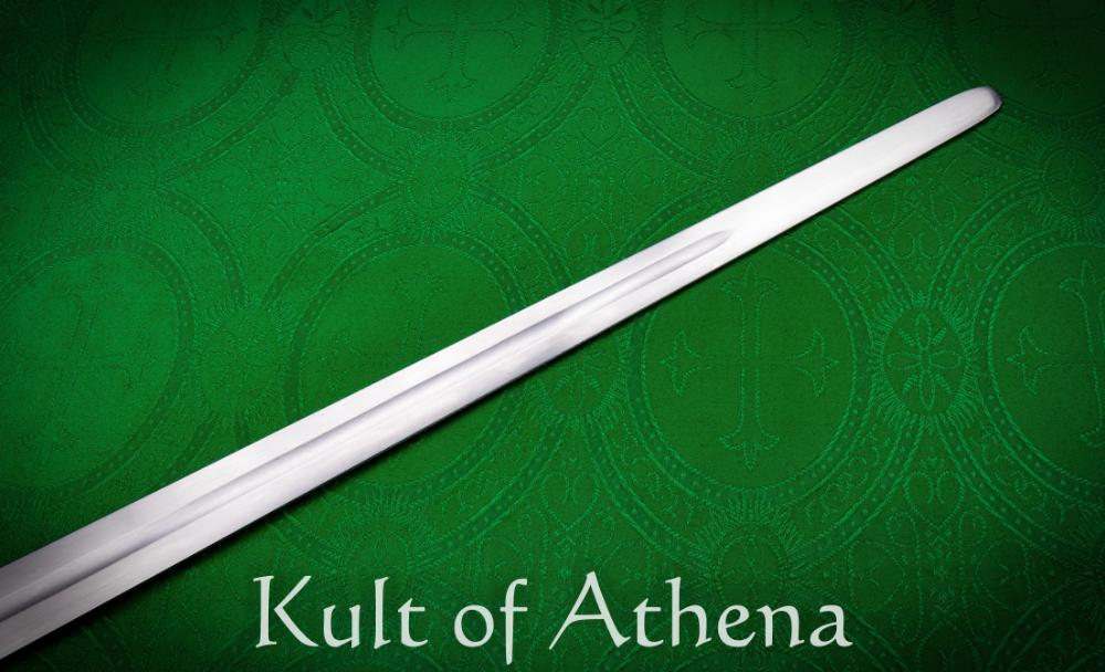 The blade measures 27 3/8 inches and is forged from CRV4 (51CrV4) high carbon spring steel, a material valued for its excellent balance of toughness and flexibility. Designed specifically for safe training environments, the blade features thick rebated edges measuring approximately 2–3 mm and a rounded spatulate tip. Proper heat treatment provides a hardness of roughly 50–54 HRc, allowing the blade to flex under stress and return to true, helping it endure repeated impact during sport combat or stage choreography.