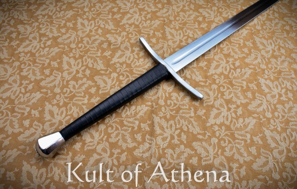 The 9 and 3/8 inch beechwood grip is wrapped in leather, providing a secure, comfortable hold for one or two hands. Despite the sword’s robust construction and thick blade, it remains surprisingly easy to wield, weighing approximately 3 lbs 6 oz with a point of balance roughly 3.5 inches above the guard. The Cedric Longsword is a versatile and reliable choice for armored fighting practitioners, reenactors, and anyone seeking a sport-ready, historically inspired longsword.