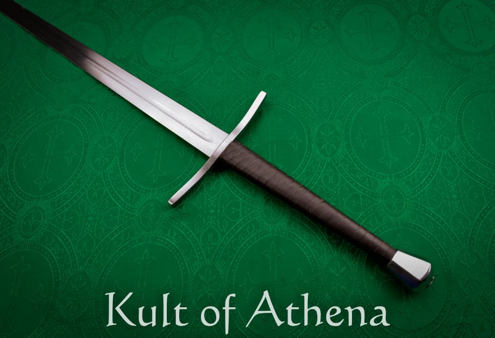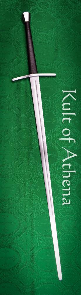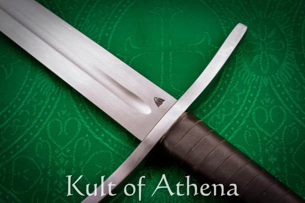 The 9 and 3/8 inch beechwood grip is wrapped in leather, providing a secure, comfortable hold for one or two hands. Despite the sword’s robust construction and thick blade, it remains surprisingly easy to wield, weighing approximately 3 lbs 6 oz with a point of balance roughly 3.5 inches above the guard. The Cedric Longsword is a versatile and reliable choice for armored practitioners, reenactors, and anyone seeking a sport-ready, historically inspired longsword.