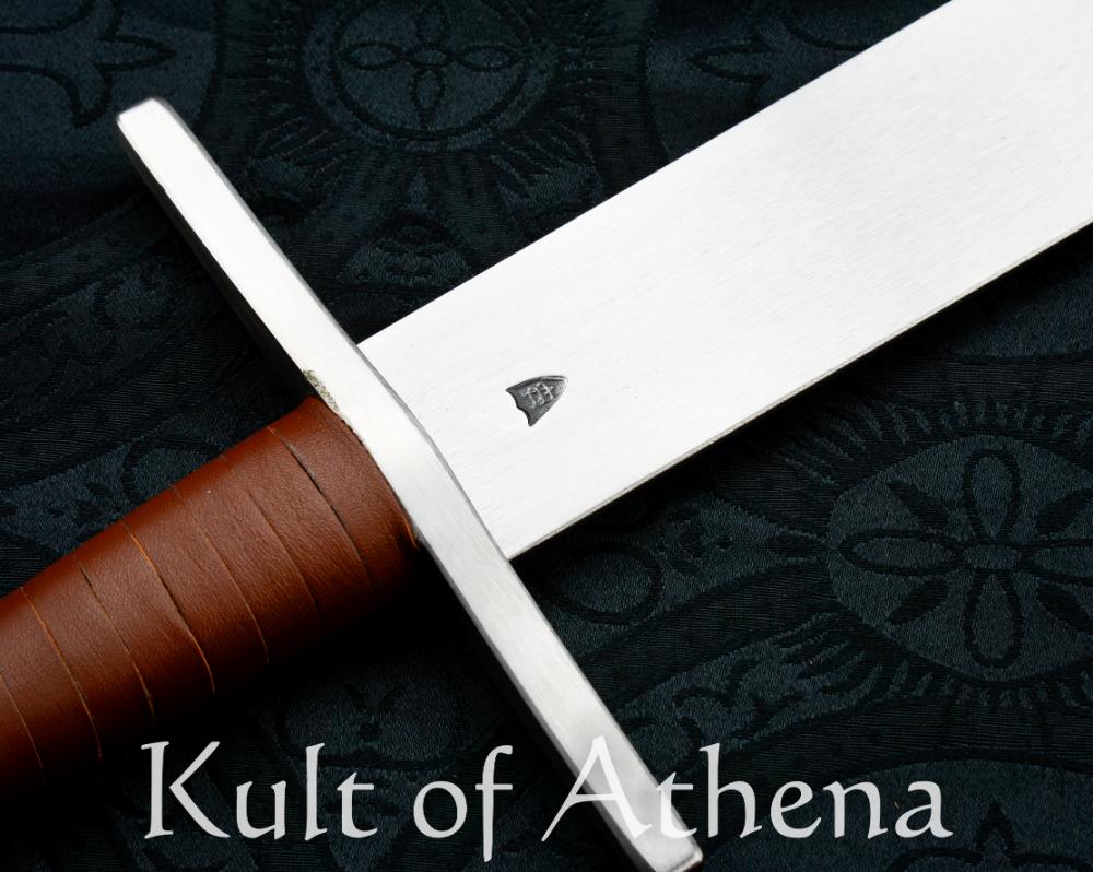 The blade measures 24 3/8 inches in length and is forged from 51CrV4 high carbon spring steel, a material widely respected for its excellent combination of toughness, flexibility, and resistance to fatigue. Designed specifically for training and reenactment environments, the blade features thick rebated edges and a rounded tip to enhance safety during controlled contact. Proper heat treatment allows the blade to flex under stress and return to true, helping the sword withstand the demands of regular sparring and stage combat. The falchion’s broad cutting profile and forward presence echo the historical role of these weapons as powerful cutting tools on the battlefield.
