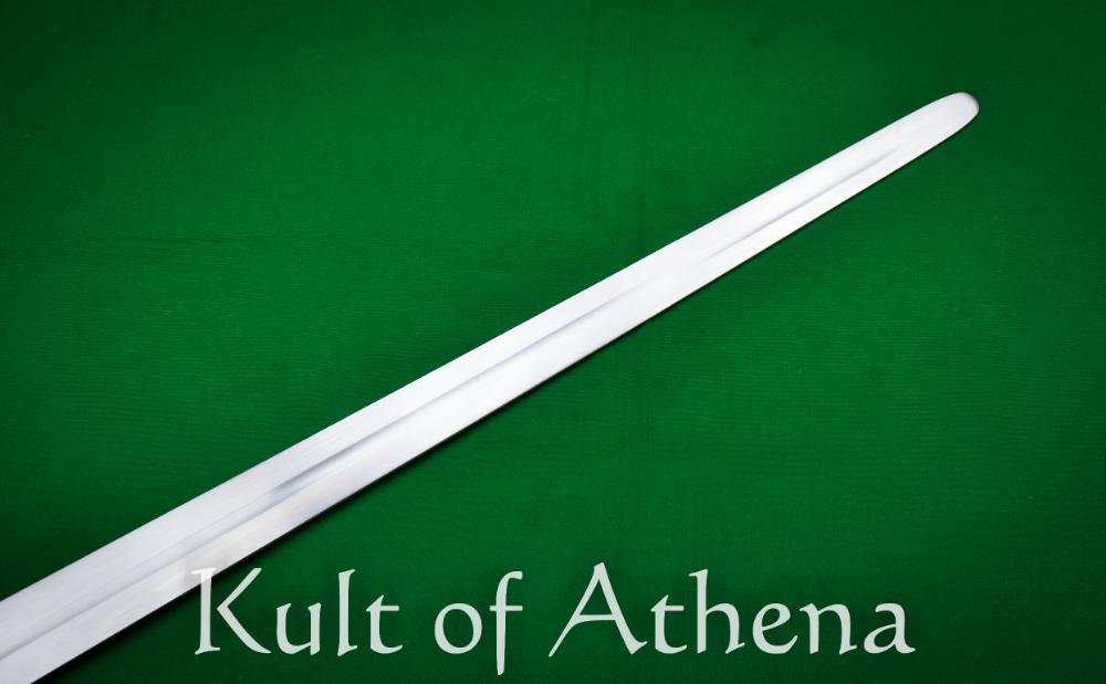 This Viking sword from Viktor Berbekucz of Hungary is is forged from CRV4 / 51CrV4 high carbon steel and is a resilient spring steel known for its toughness and flexibility. Measuring 27 7/16 inches, the blade follows the classic Viking sword profile with a wide fuller running along much of its length. This fuller reduces excess weight while preserving structural strength, helping the sword move quickly and smoothly during cutting actions. The tang is securely peened over the pommel, providing a durable and historically authentic hilt construction.